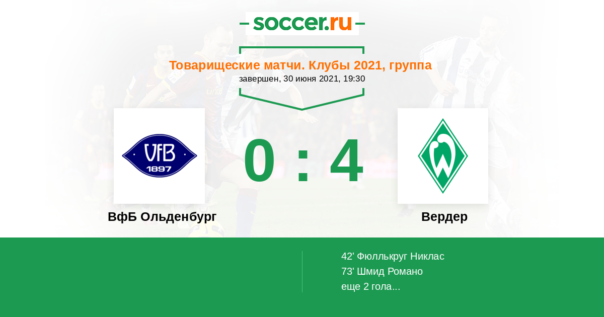 ВфБ Ольденбург - Вердер: обзор матча 30 июня 2021