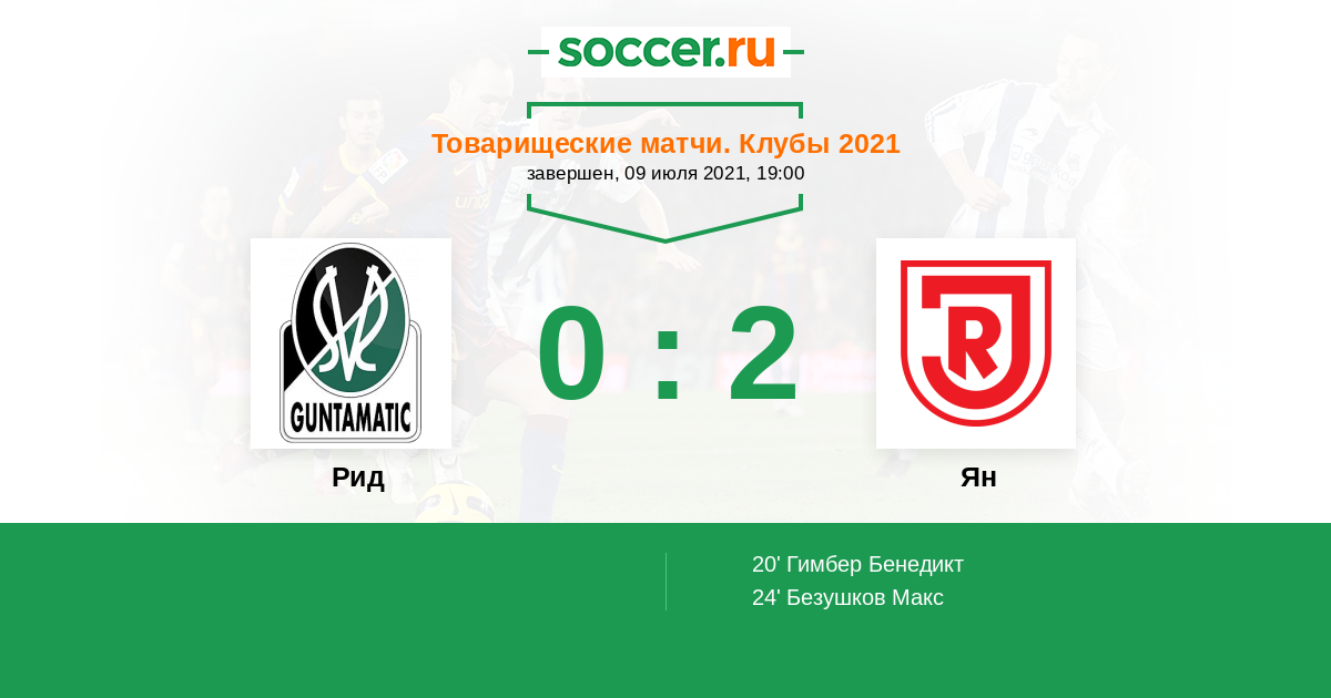 Рид - Ян: обзор матча 9 июля 2021