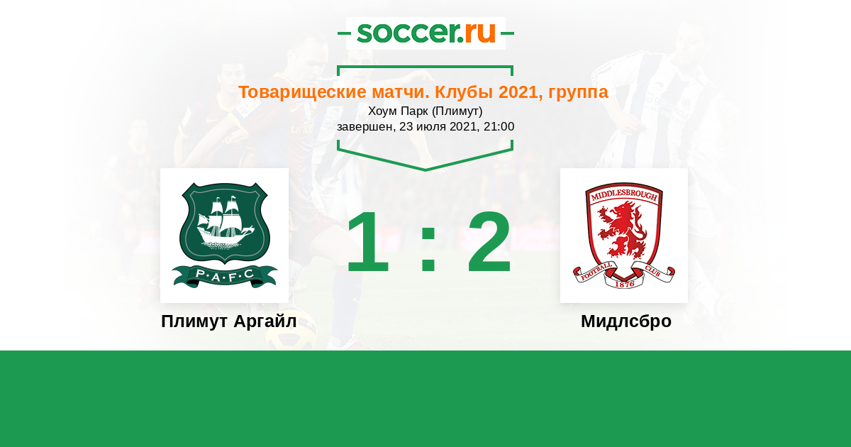 Плимут Аргайл - Мидлсбро: обзор матча 23 июля 2021