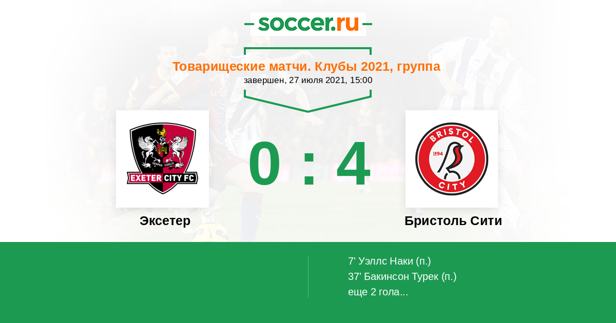 Эксетер - Бристоль Сити: обзор матча 27 июля 2021