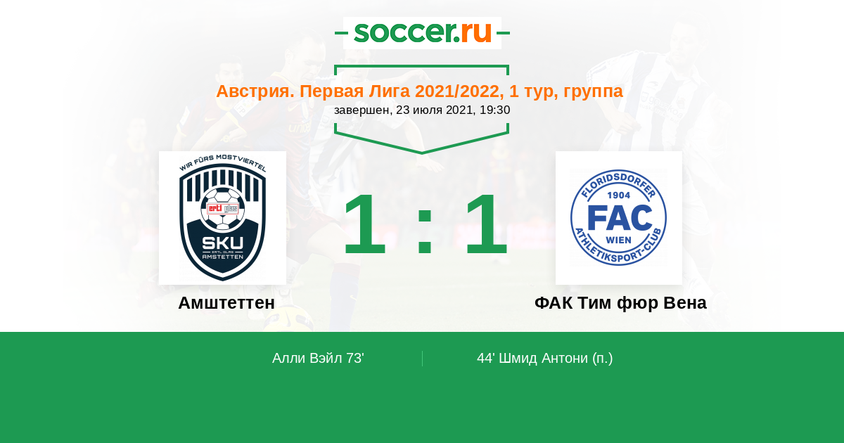 Амштеттен - ФАК Тим фюр Вена: обзор матча 23 июля 2021