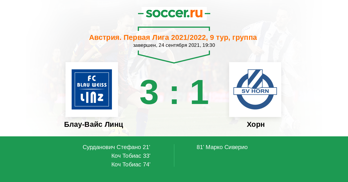 Блау-Вайс Линц - Хорн: обзор матча 24 сентября 2021