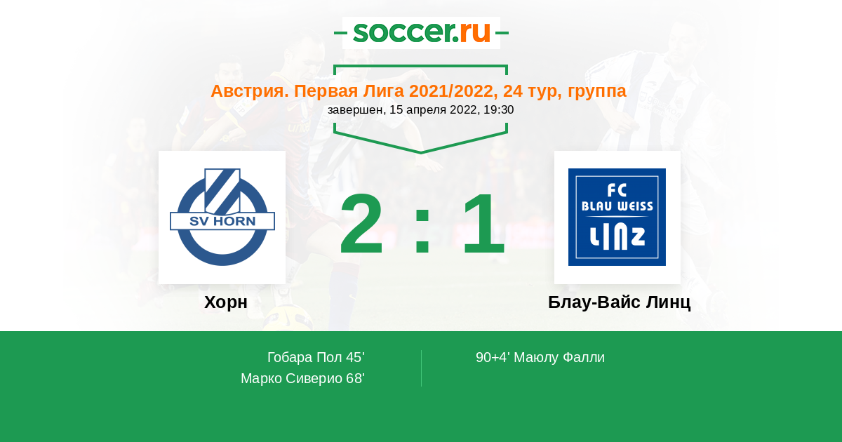Хорн - Блау-Вайс Линц: обзор матча 15 апреля 2022