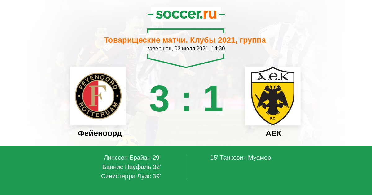 Фейеноорд - АЕК: обзор матча 3 июля 2021