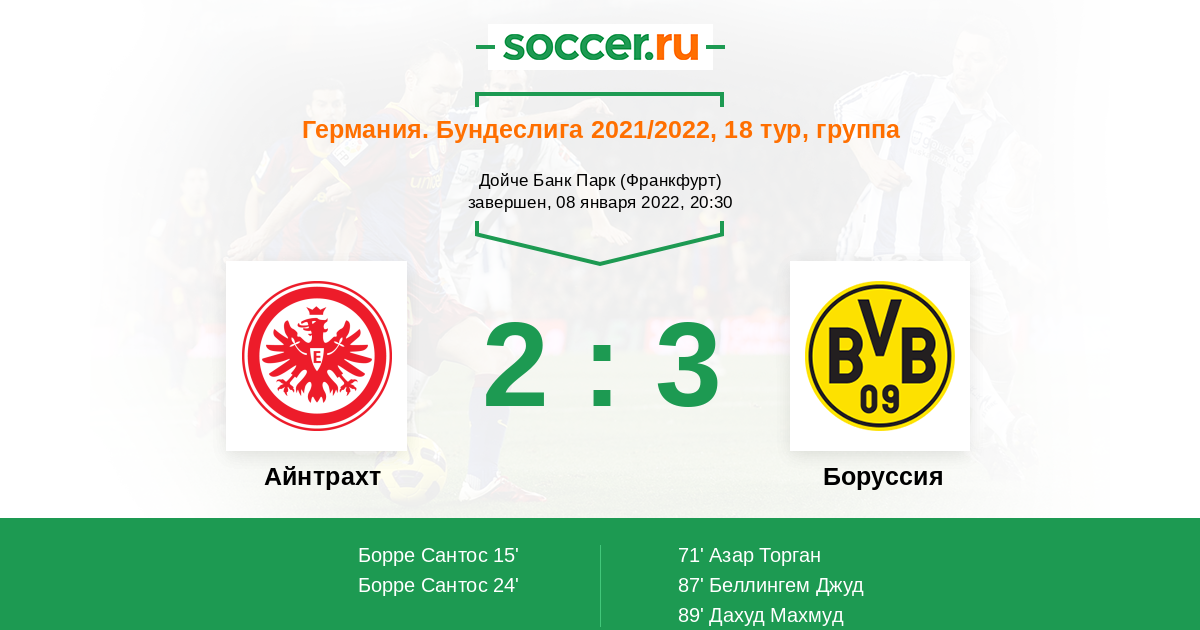 Айнтрахт - Боруссия: обзор матча 8 января 2022