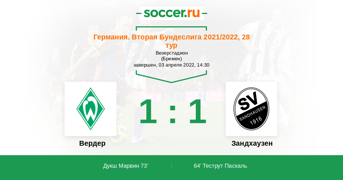 Вердер - Зандхаузен: обзор матча 3 апреля 2022