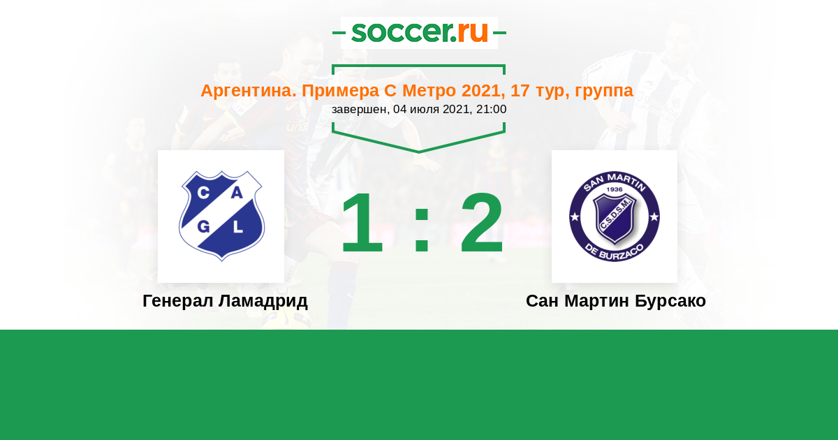 Генерал Ламадрид - Сан Мартин Бурсако: обзор матча 4 июля 2021