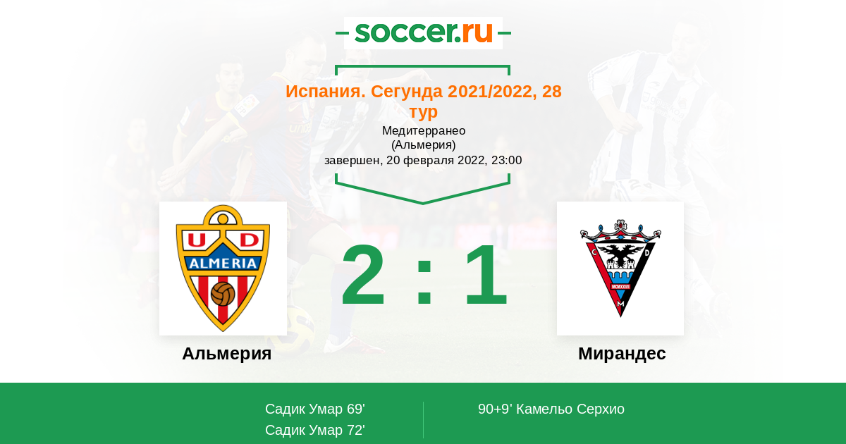 Альмерия - Мирандес: обзор матча 20 февраля 2022