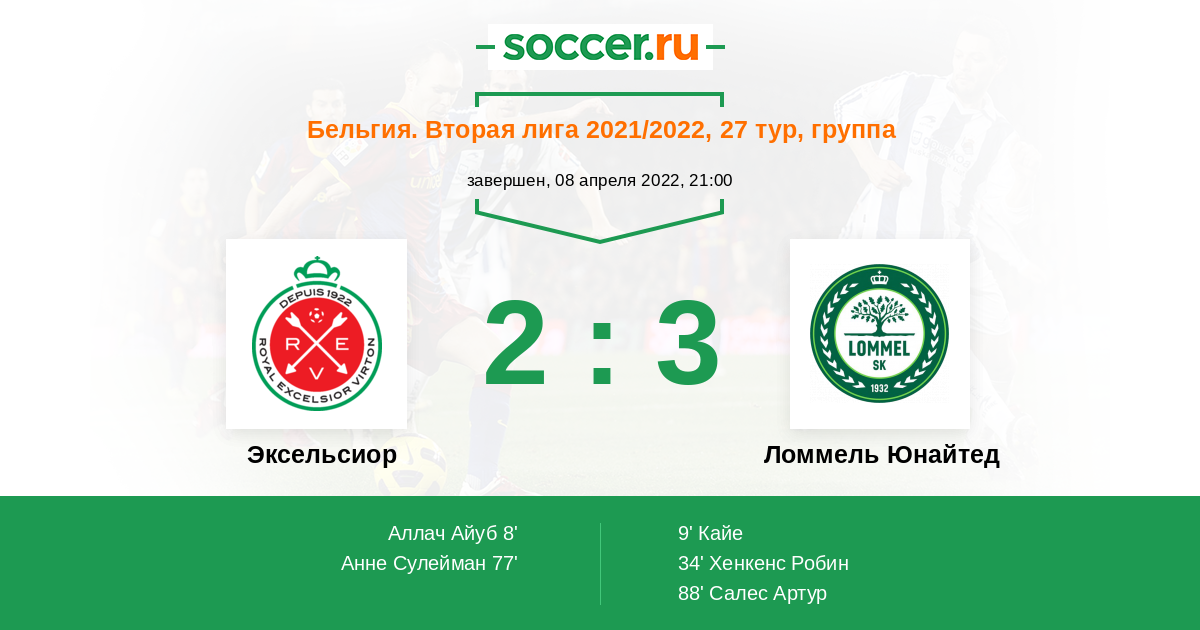 Эксельсиор - Ломмель Юнайтед: обзор матча 8 апреля 2022