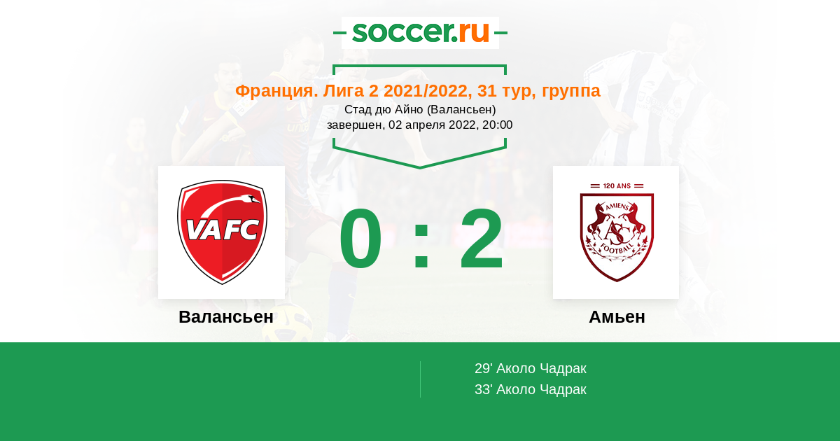 Валансьен - Амьен: обзор матча 2 апреля 2022