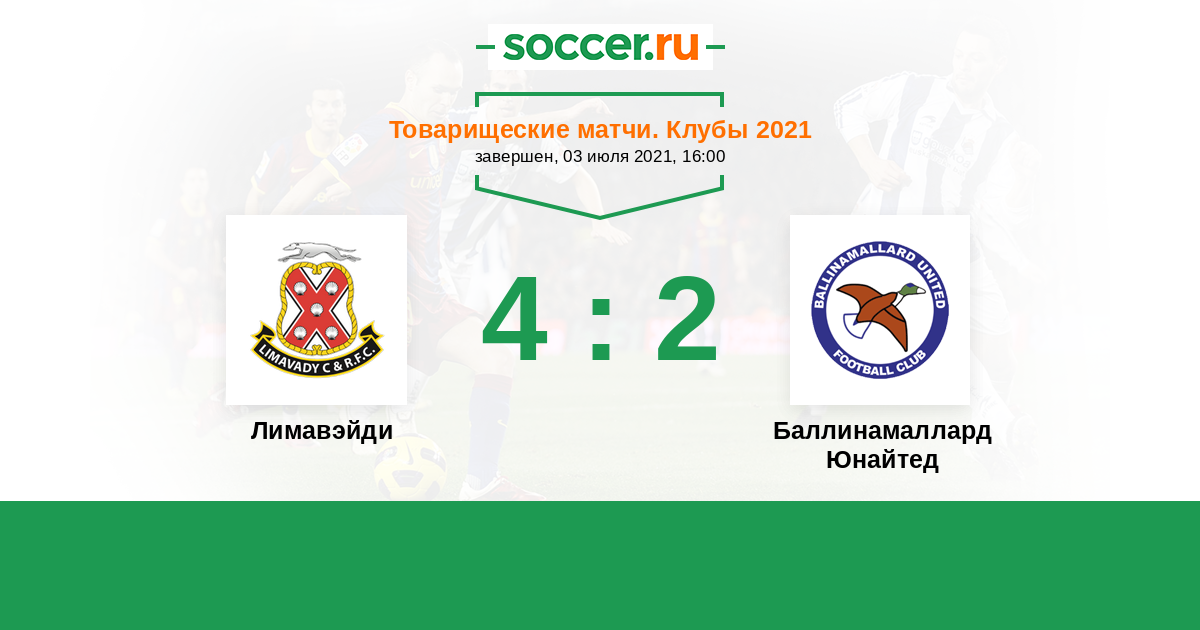 Лимавэйди - Баллинамаллард Юнайтед: обзор матча 3 июля 2021