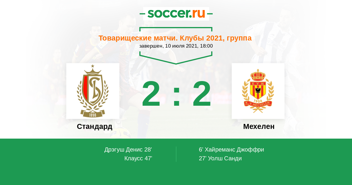 Стандард - Мехелен: обзор матча 10 июля 2021