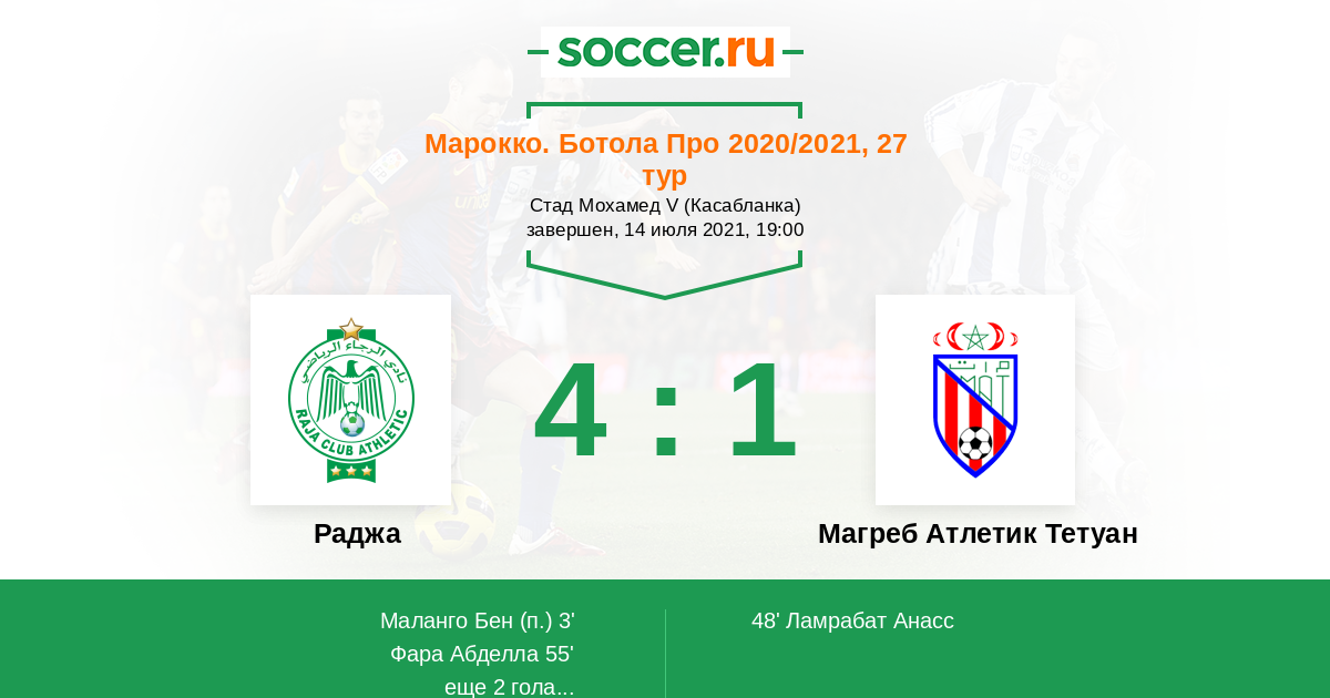 Раджа - Магреб Атлетик Тетуан: обзор матча 14 июля 2021