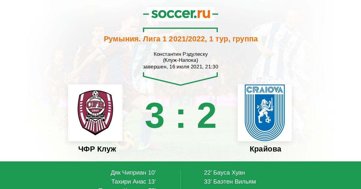 ЧФР Клуж - Крайова: обзор матча 16 июля 2021