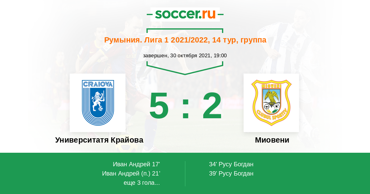 Университатя Крайова - Миовени: обзор матча 30 октября 2021