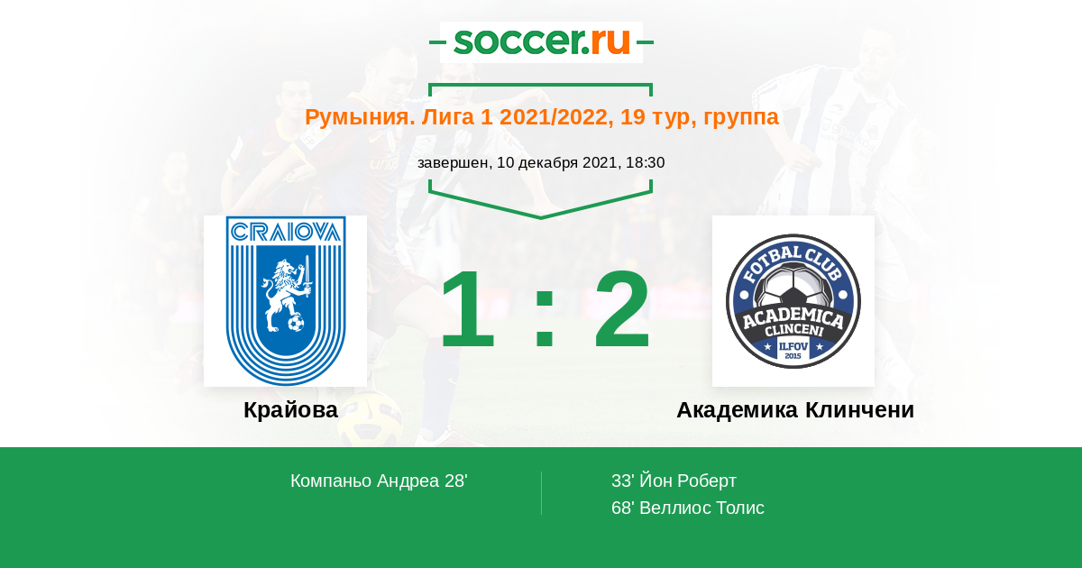 Крайова - Академика Клинчени: обзор матча 10 декабря 2021
