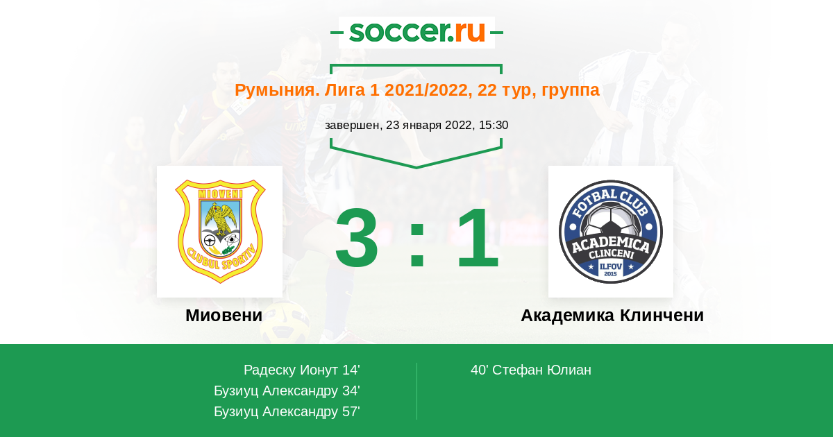 Миовени - Академика Клинчени: обзор матча 23 января 2022