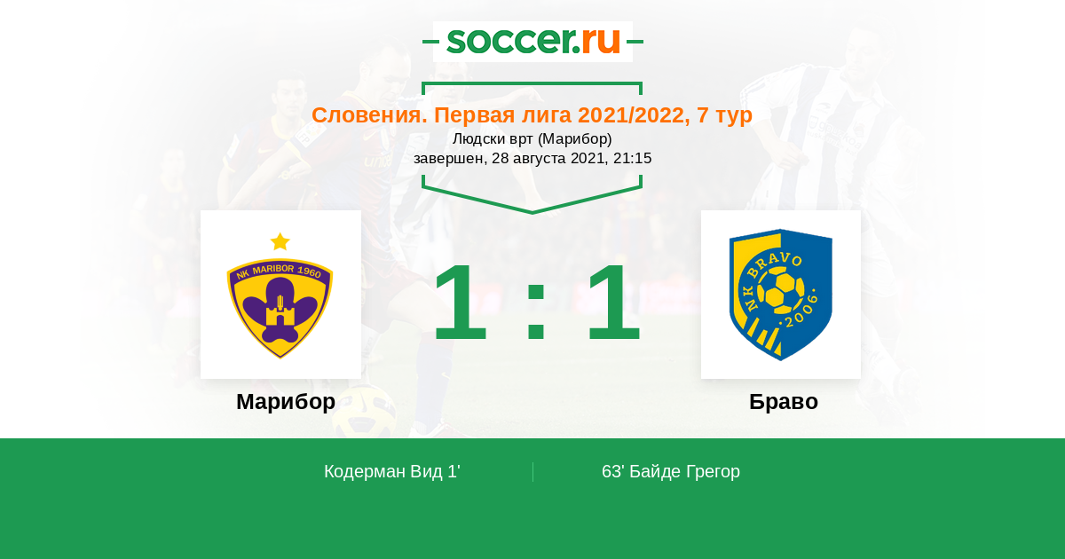 Марибор - Браво: обзор матча 28 августа 2021