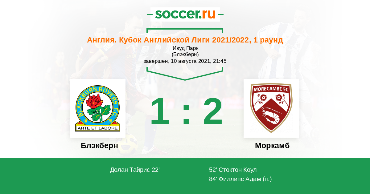 Блэкберн - Моркамб: обзор матча 10 августа 2021