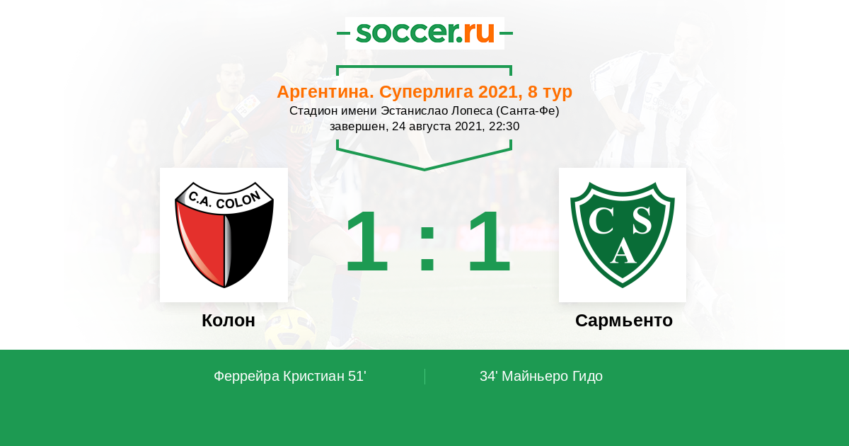 Колон - Сармьенто: обзор матча 24 августа 2021