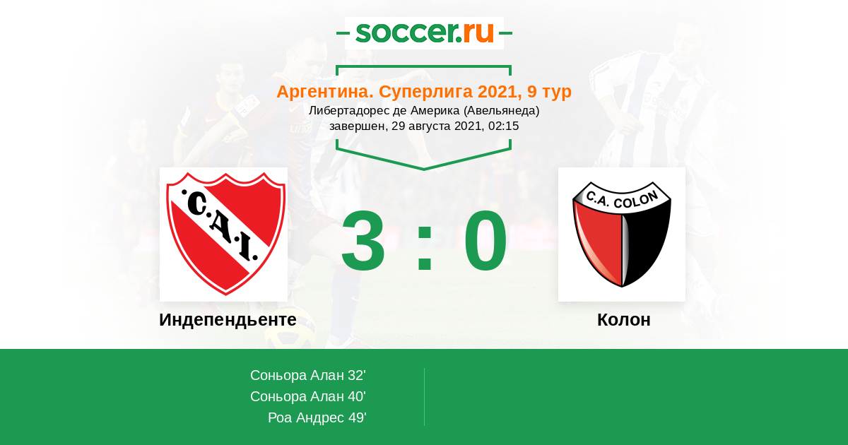 Индепендьенте - Колон: обзор матча 29 августа 2021