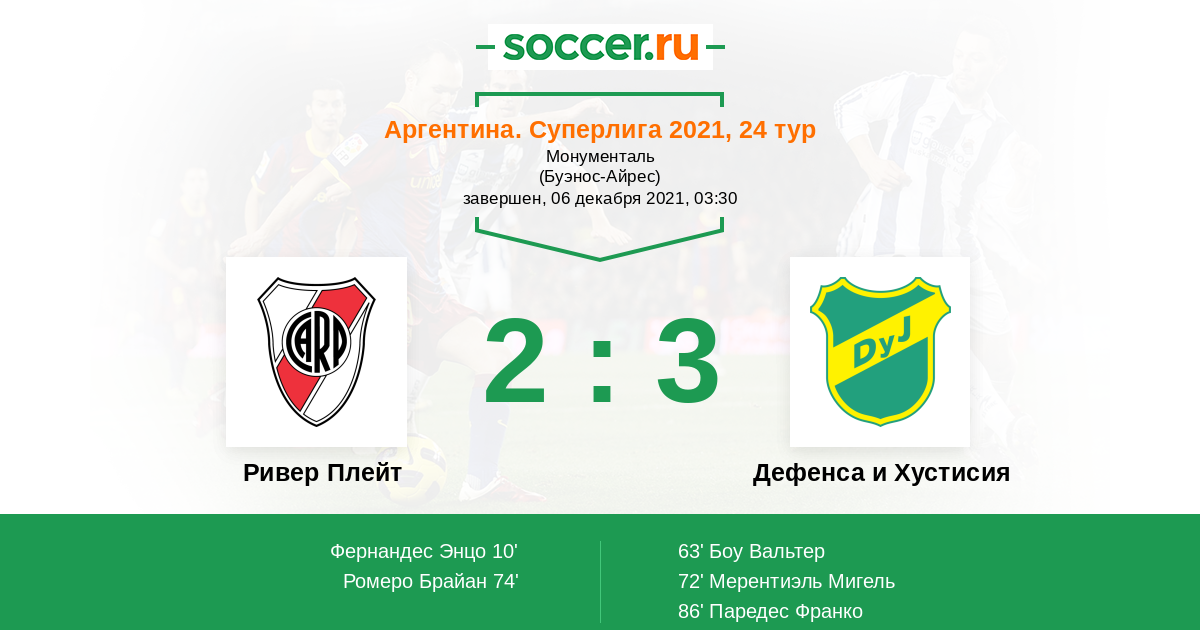 Ривер Плейт - Дефенса и Хустисия: обзор матча 6 декабря 2021