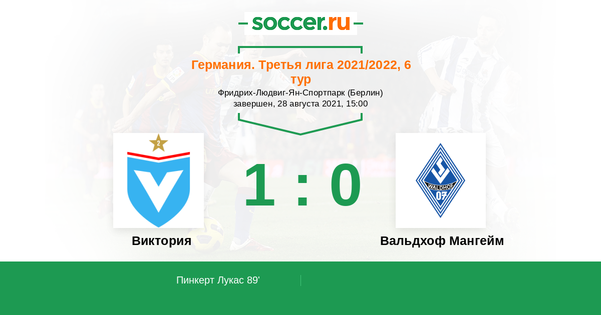 Виктория - Вальдхоф Мангейм: обзор матча 28 августа 2021