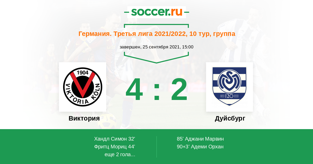 Виктория - Дуйсбург: обзор матча 25 сентября 2021