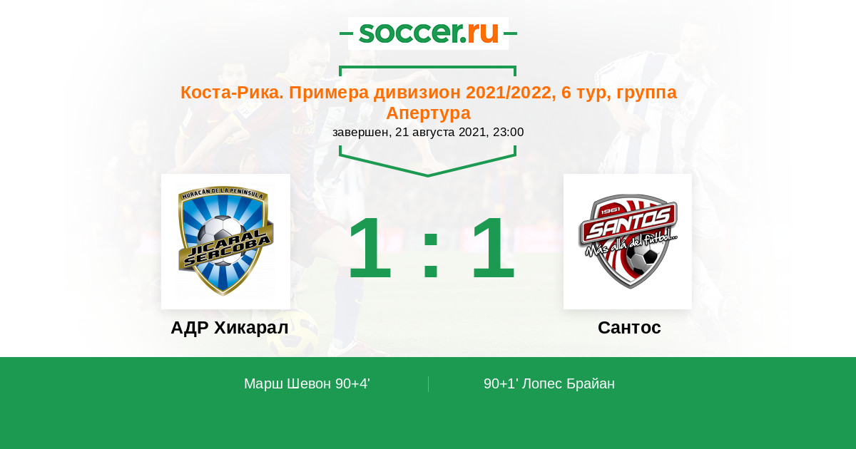 АДР Хикарал - Сантос: обзор матча 21 августа 2021