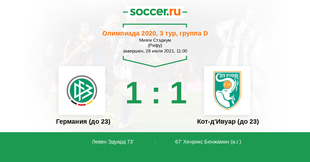 Германия (до 23) - Кот-д'Ивуар (до 23): обзор матча 28 июля 2021