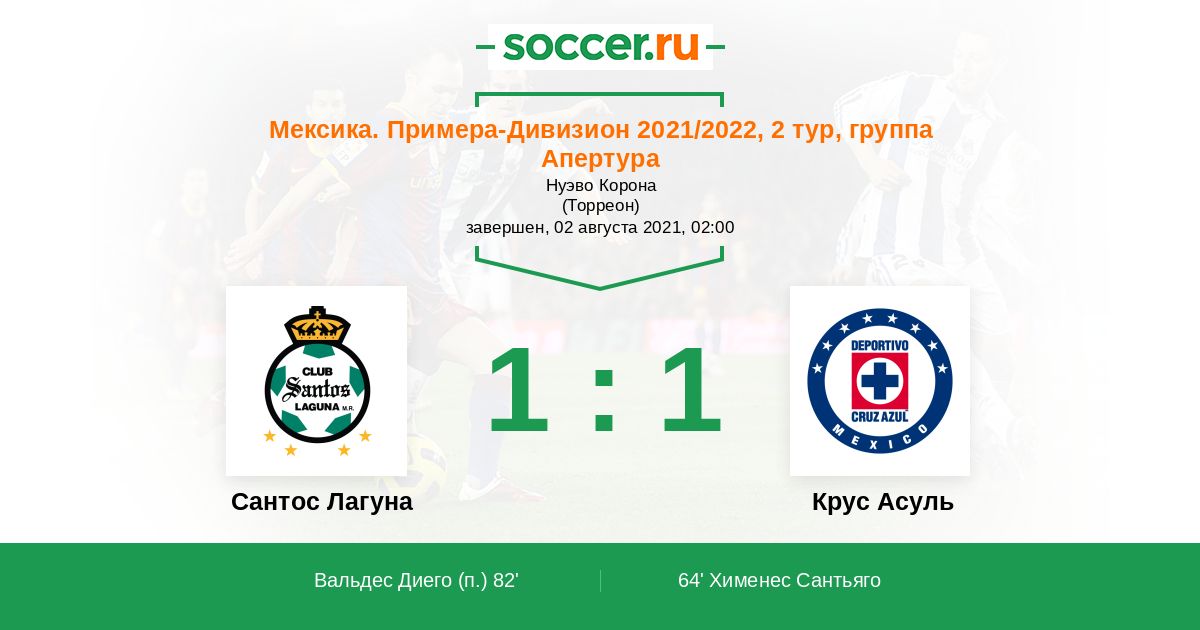 Сантос Лагуна - Крус Асуль: обзор матча 2 августа 2021