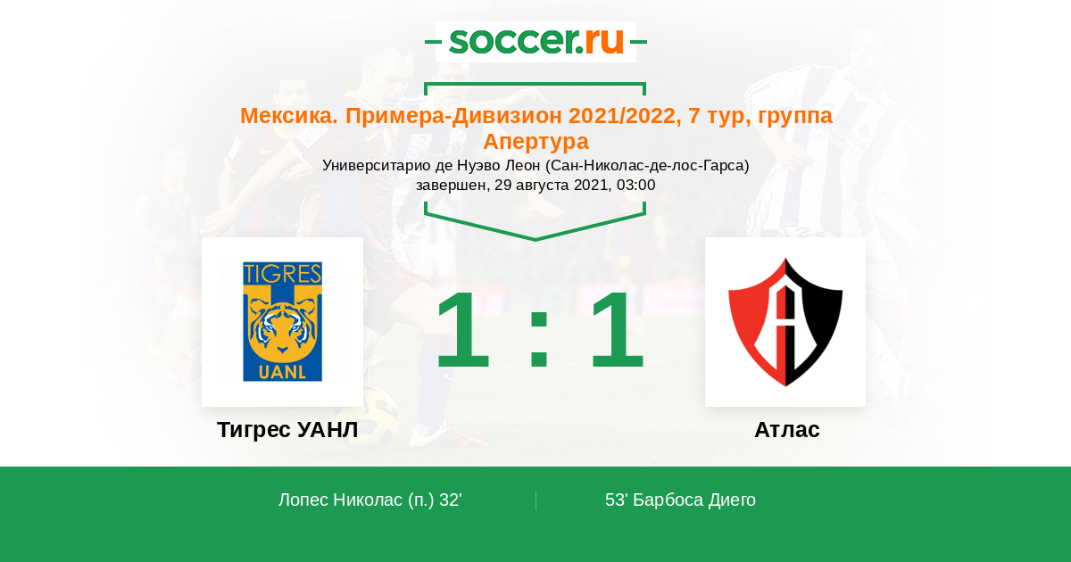 Тигрес УАНЛ - Атлас: обзор матча 29 августа 2021