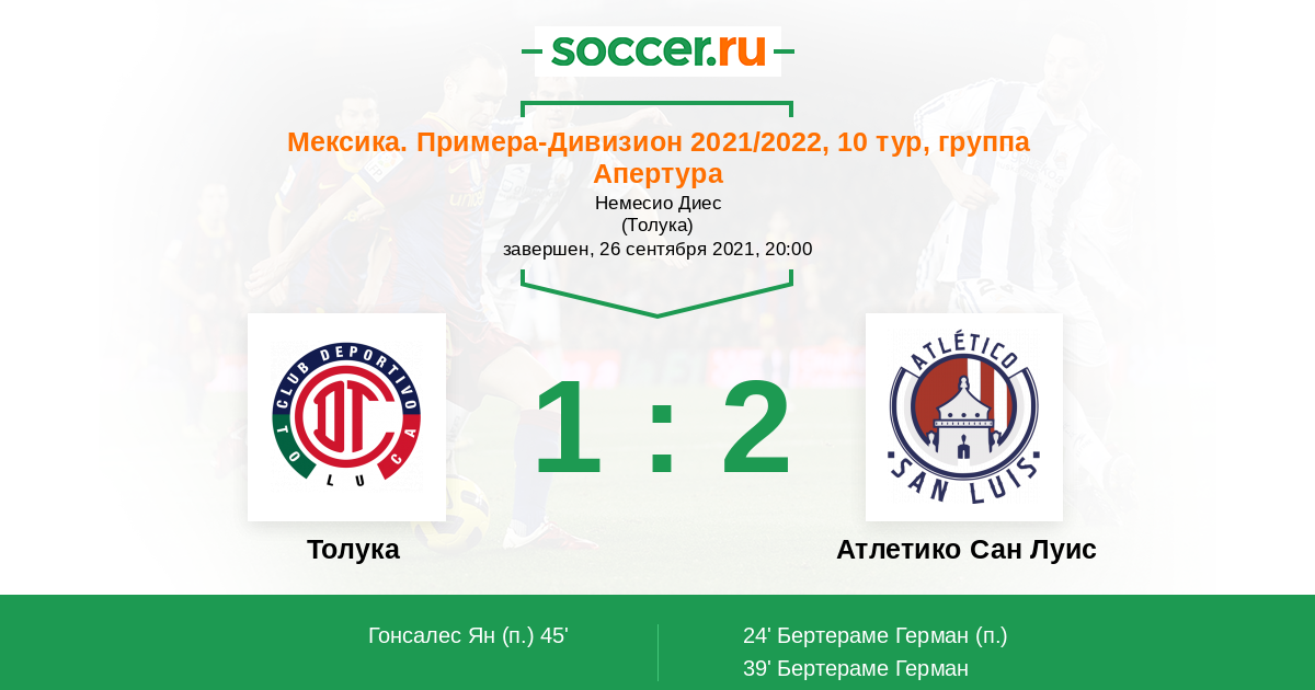 Толука - Атлетико Сан Луис: обзор матча 26 сентября 2021