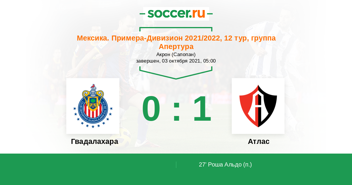 Гвадалахара - Атлас: обзор матча 3 октября 2021
