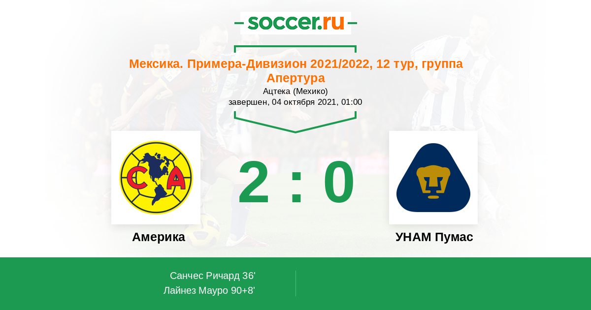 Америка - УНАМ Пумас: обзор матча 4 октября 2021