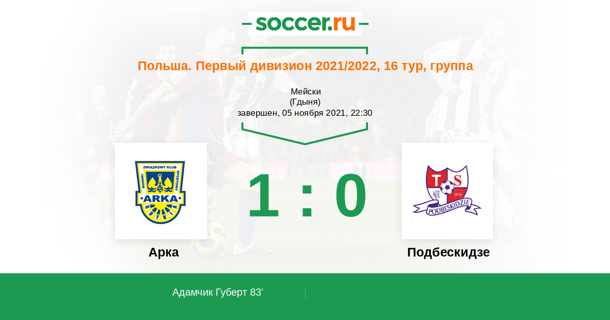 Арка - Подбескидзе: обзор матча 5 ноября 2021