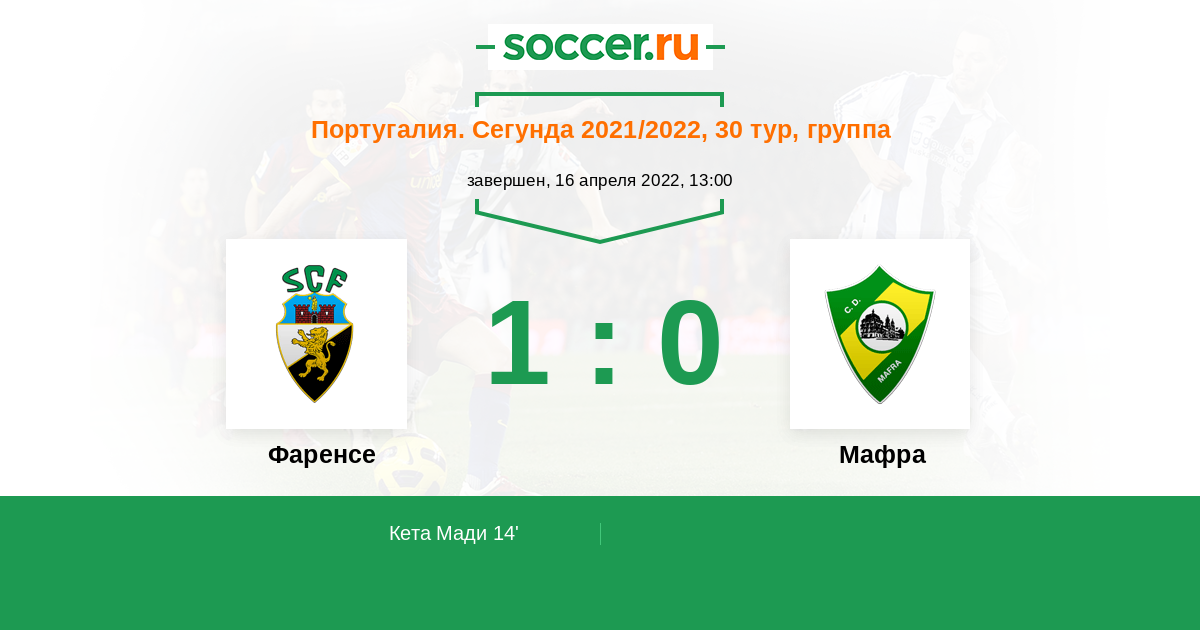 Фаренсе - Мафра: обзор матча 16 апреля 2022