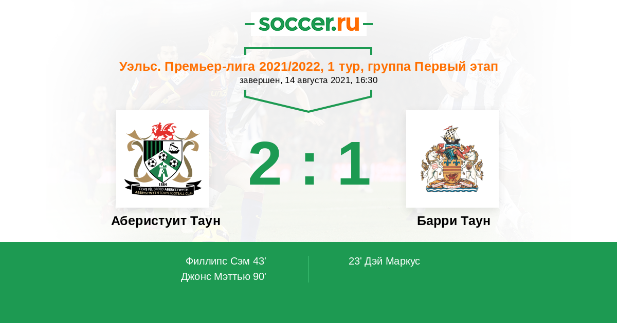 Аберистуит Таун - Барри Таун: обзор матча 14 августа 2021