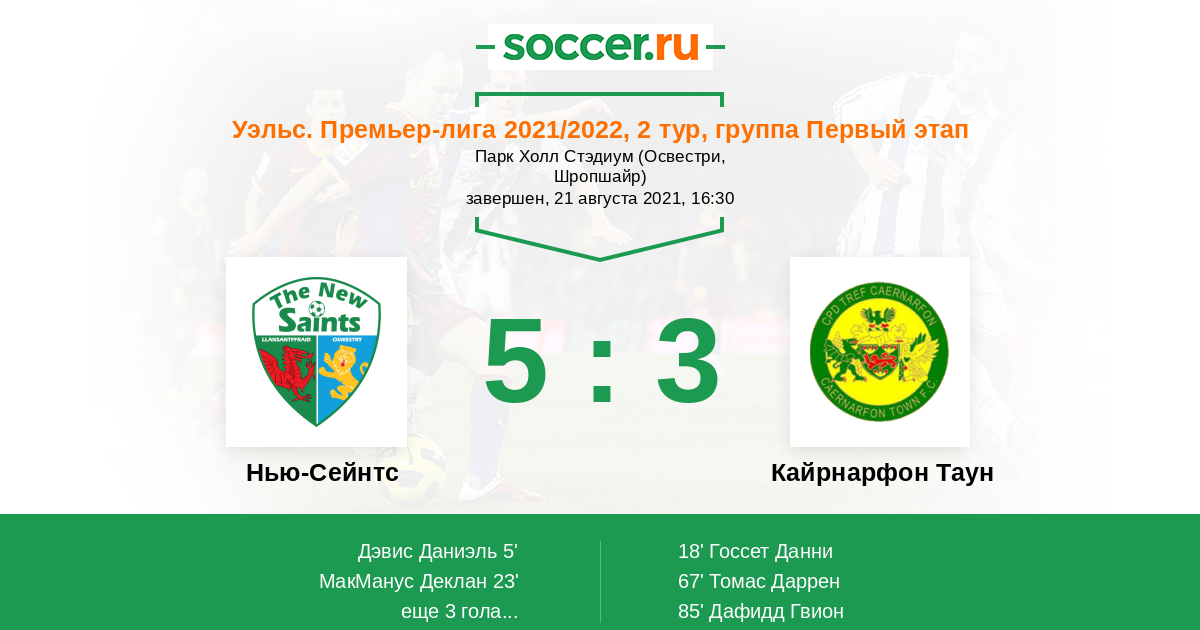 Нью-Сейнтс - Кайрнарфон Таун: обзор матча 21 августа 2021