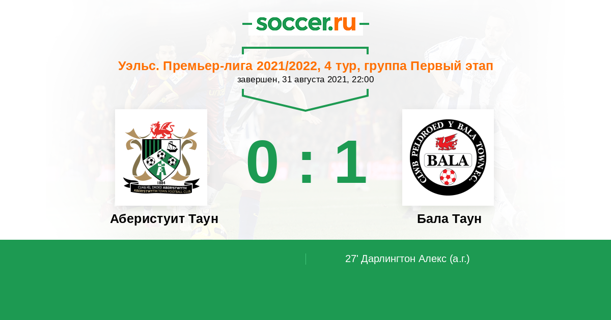 Аберистуит Таун - Бала Таун: обзор матча 31 августа 2021
