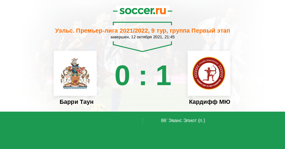 Барри Таун - Кардифф МЮ: обзор матча 12 октября 2021
