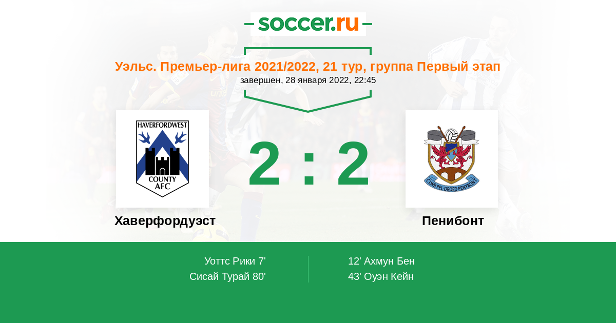 Хаверфордуэст - Пенибонт: обзор матча 28 января 2022