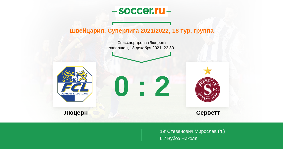 Люцерн - Серветт: обзор матча 18 декабря 2021