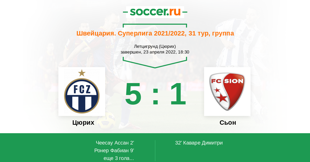 Цюрих - Сьон: обзор матча 23 апреля 2022