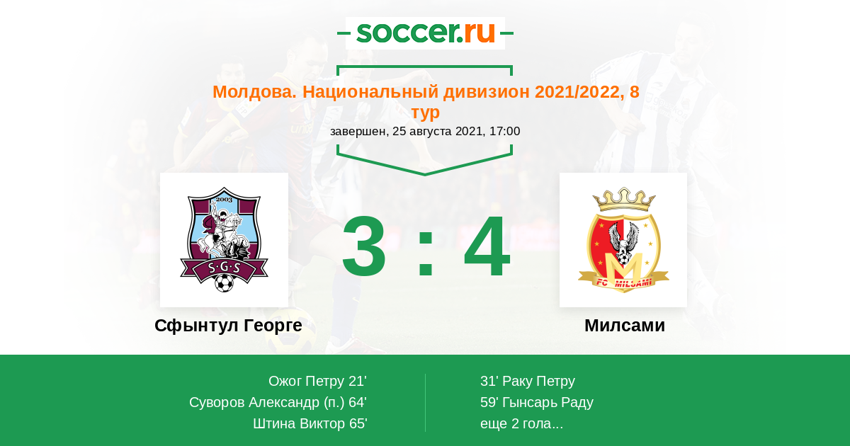 Сфынтул Георге - Милсами: обзор матча 25 августа 2021