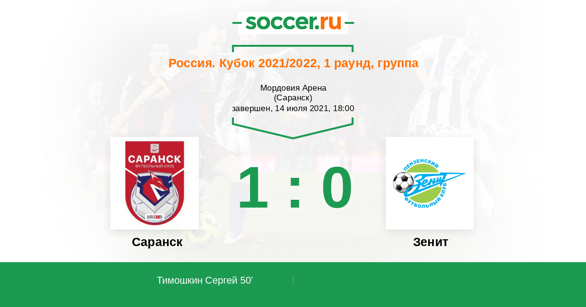 Саранск - Зенит: обзор матча 14 июля 2021