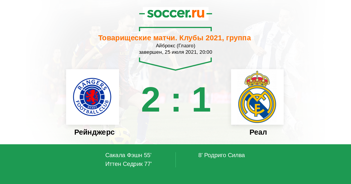 Рейнджерс - Реал: обзор матча 25 июля 2021