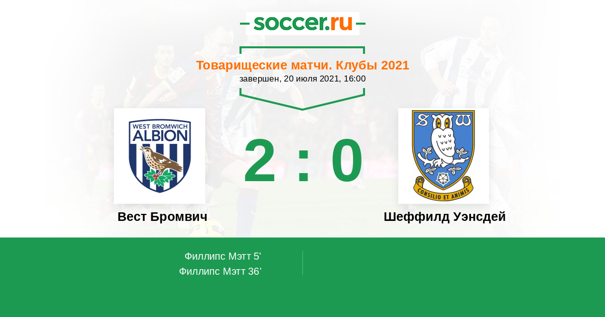 Вест Бромвич - Шеффилд Уэнсдей: обзор матча 20 июля 2021