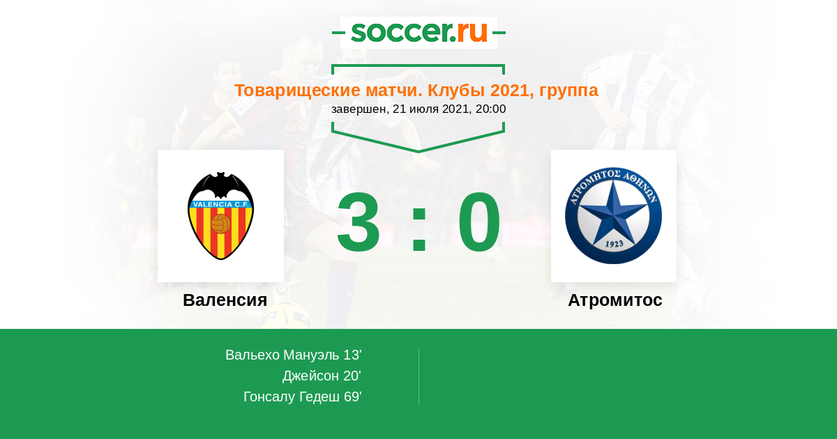 Валенсия - Атромитос: обзор матча 21 июля 2021
