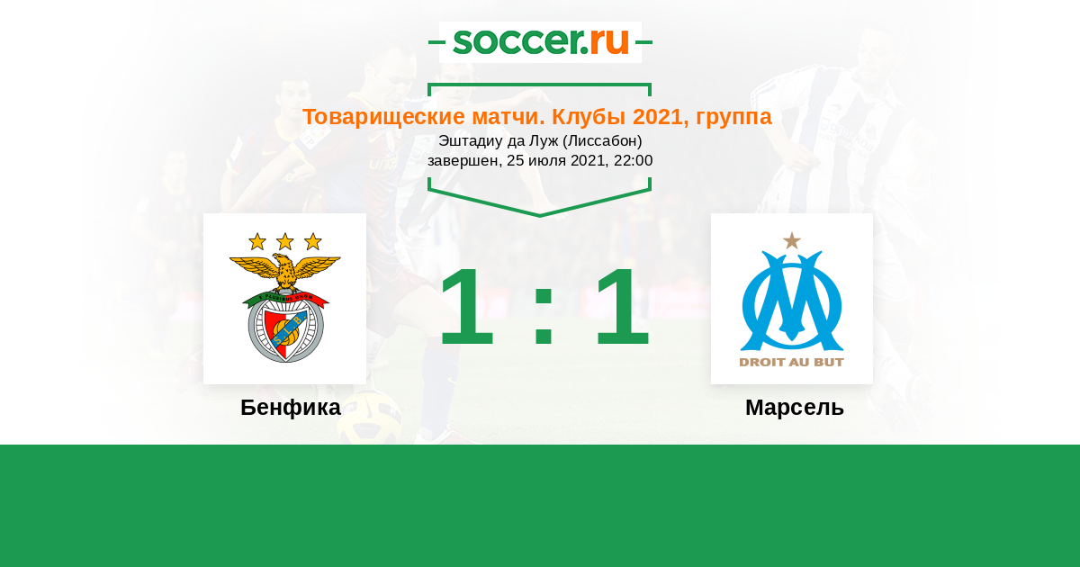 Бенфика - Марсель: обзор матча 25 июля 2021